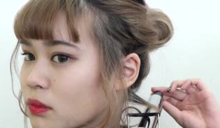 耳の上の髪をジグザクに分け、後ろ髪を一つに結びます。左右の残したサイドヘアはダッカールで留めておくと、結ぶ髪と混ざらないのでオススメです!後ろ髪はポニーテールを途中で輪っかのように縛り、お団子を作ります♪