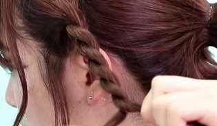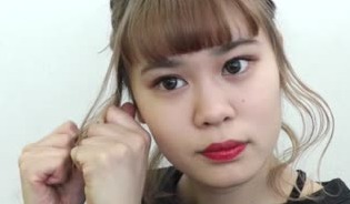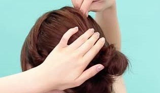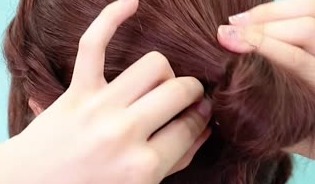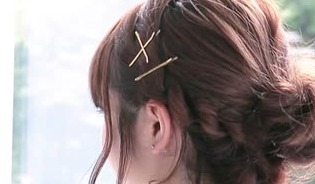 ダッカールで留めた左右の髪を、お団子の下までひねります。髪の毛の束を2つに分け、クロスしながら捻るとほどけにくくなります!