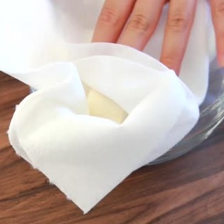 キッチンペーパーを2枚重ねにし、豆腐を包みます。キッチンペーパーの端が重なっている方を下にし、ラップをせずに電子レンジ(500W)で3分加熱します。