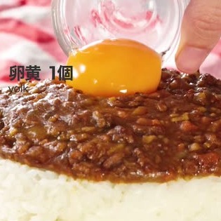 カレーの中央をくぼませ、卵黄をのせます。お好みでパセリをふったら完成です♪