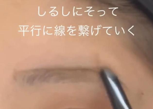 眉毛の上のラインが引けたら、同じように眉毛の下のラインもまっすぐと平行に引いていきます。