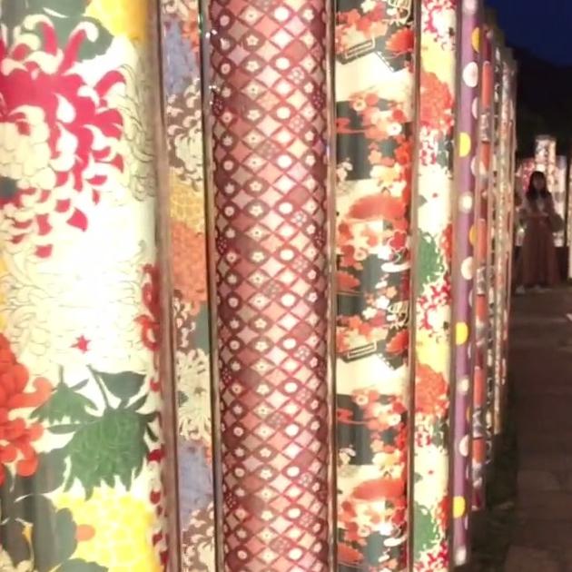 600本の京友禅が素敵なスポット♡柄の違いを楽しみながら散歩ができます。夜はライトアップされ、幻想的な風景が広がります。