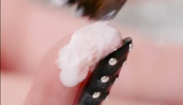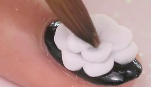 白の「ミクスチャー」で立体的なカメリアデザインを作っていきます。「ミクスチャー」とは、アクリルパウダーとアクリルリキッドを混ぜ合わせたもの。3Dネイルに必須のアイテムです!