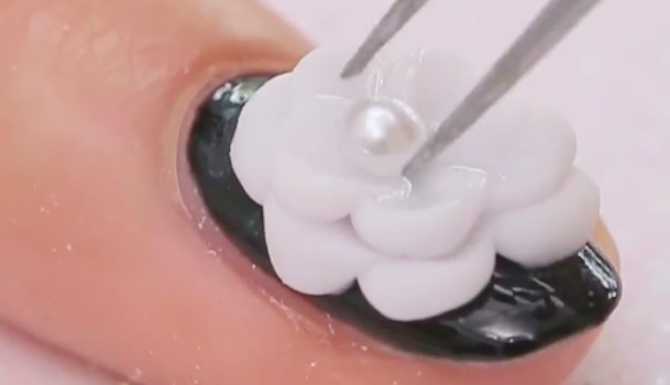 カメリアデザインが作れたら、真ん中に”パール”や”クリスタル”のストーンをのせましょう。一気に高級感がプラスします!