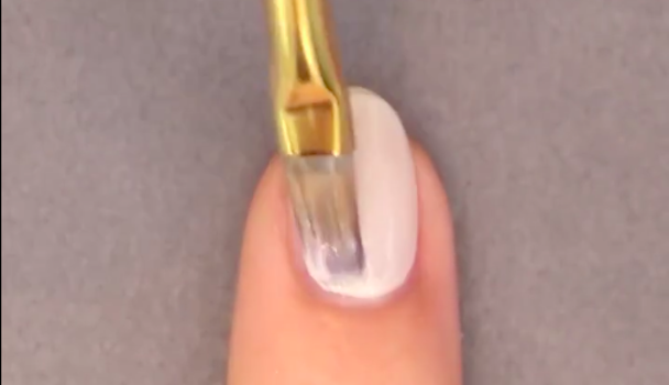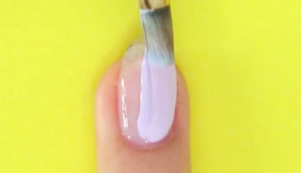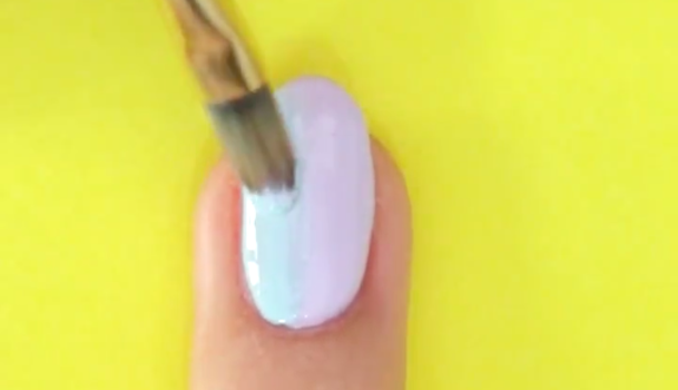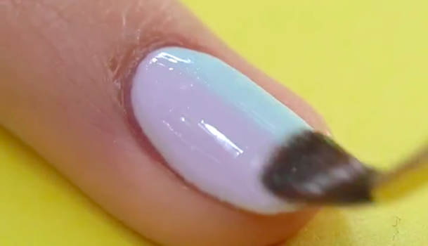まず、ラベンダーカラーのジェルを爪の右半分に塗っていきます。