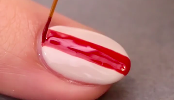 赤のジェルで真ん中にラインを引きます。ここでは、少し太めに引くのがポイントです。