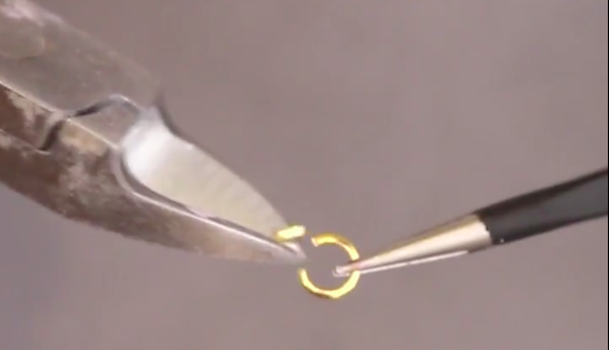 ネイルパーツ「マルカン」をニッパーでカットして、"C"のような形にします。ここでは、同じ形を2つ作ってください!