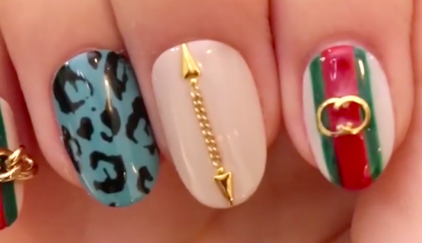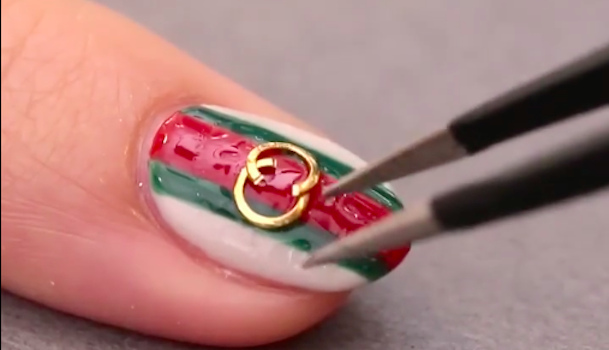 洗練されたデザインの高級ブランド「GUCCI」。赤と緑の大人っぽいカラーとレトロな花柄が魅力のネイルデザインです。高級感あふれるネイルで、あなたも素敵レディに♡
