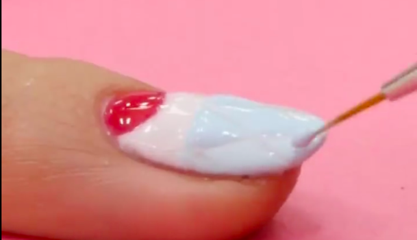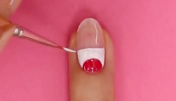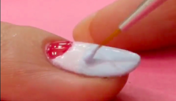 爪の上半分を残して、下半分は白色で塗っていきます。さきほどの赤色にかぶらないように、丁寧に塗っていきましょう!