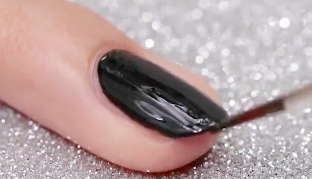 まず、黒のジェルでベースを塗っていきます。白のカメリアが映えるようベースは黒がオススメ!