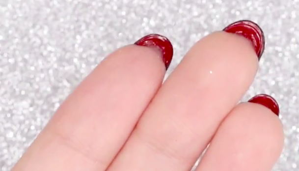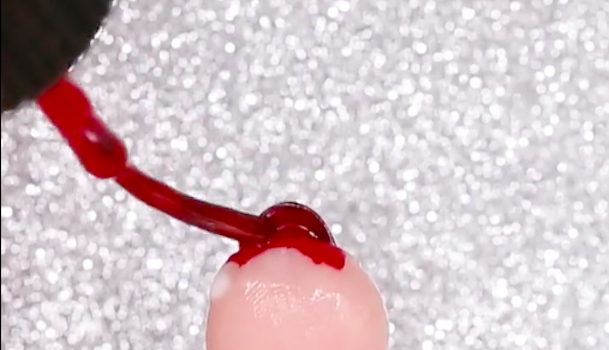 ボンドが乾いてきたら、爪の裏側を赤のマニキュアで塗っていきます。