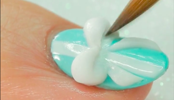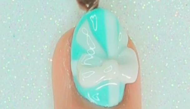 立体感が出るよう白のカラージェルを重ね、リボンを作っていきます。アレンジして細身ラインでシンプルにしてもいいですし、レースシールでガーリーに仕上げてもかわいくなります♡