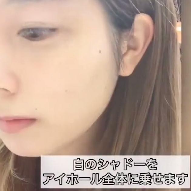 白のアイシャドウをアイホール全体にのせていきます。