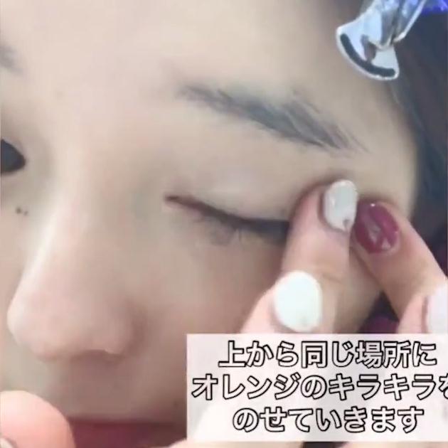 さらに上からキラキラのアイシャドウをのせましょう。