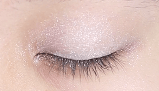 大きめのラメありアイシャドウなので、全体的に塗ってしまうと派手に見えすぎてかえって逆効果。そんな時は、上まぶた黒目の延長線上に、縦のラインを描くようにのせることで立体的で印象的な目元になりますよ。縦幅が広くみえるので、デカ目効果も……♡
