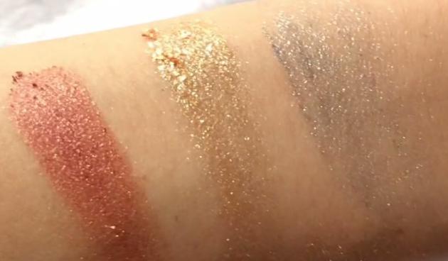 単色で使うのもよし、もちろんアイメイクをすべてこのパレットで終わらせるのもよしと、これ1つでメイクの幅が広がるアイテム。真ん中のラメありの2色のカラーを使い分けて、キラキラとしたゴージャスな目元を演出できますよ♡