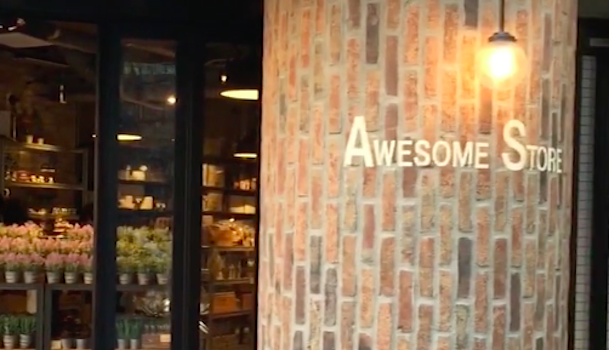 雑貨屋さんは、品揃えだけでなく外観もとても大事ですよね。「AWESOME STORE」は、レンガ造りのアメリカンな外観で、ショッピングも楽しくなること間違いなし!