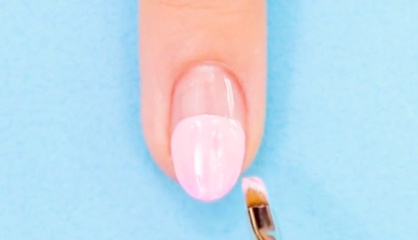 ベースカラーのジェルを塗ります。塗りムラの無いように二度塗りしてくださいね。ダスティー系の淡い色を使うと大人かわいく仕上がるのでオススメですよ。爪のエッジの部分にも塗ることで、持ちと仕上がりのキレイさが格段に良くなるので試してみてくださいね。