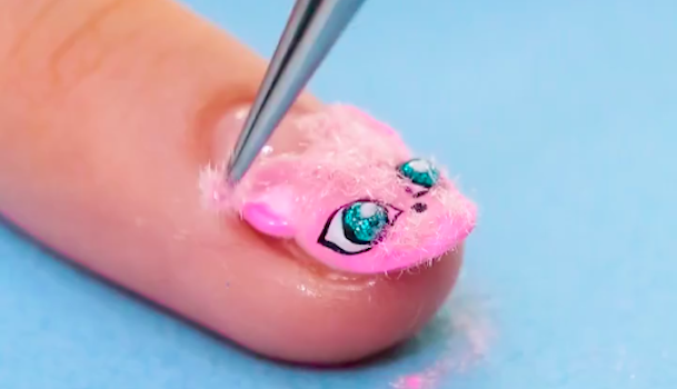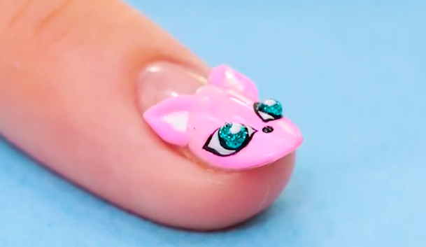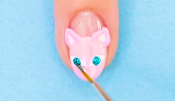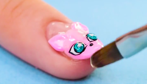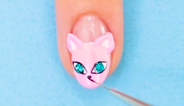 白のジェルで目と鼻と髭を描きます。手順3で耳を描いた時と同様に細い筆を使うと表情が描きやすいですよ。目の大きさや髭の位置など左右のバランスに気をつけながら描いてくださいね。