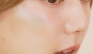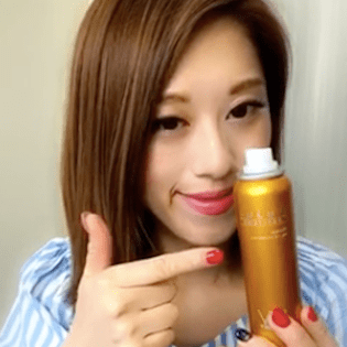 メイク後の顔半分にスプレーをして......