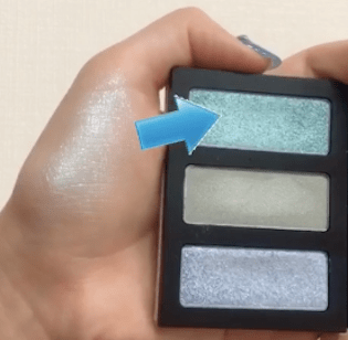 最初に、1番上のターコイズブルーをアイホール全体にオンします。目尻にかけて濃い目に塗り、グラデーションにすることでオシャレにみえます。涼しげでかわいいですね♡