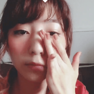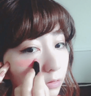 指に残ったリップを、目と鼻の間にもオンしていきます。こうすることで、ジューシーな日焼け風メイクになりますよ♡