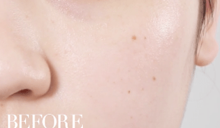 顔の向かって左側のみに塗ってみると、その違いはすぐに分かるほど!