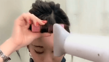 カーラーを巻きつけた前髪にドライヤーで温風をあてます。湿らせた部分が完全に乾いたら、冷風をあててくださいね。髪は、熱が冷めていく過程でその形が決まります。温風をあてた後に冷風をあてることで、1日中ふんわり前髪をキープできちゃいますよ♪