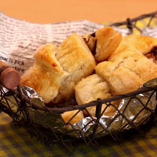 パイシートにチョコソースを塗り、オーブンで焼くだけの簡単レシピ。約30分で作れるので「小腹がすいたな~」なんて時にもおすすめです。