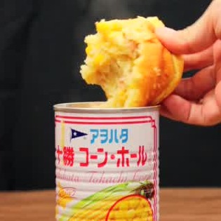 缶詰のまま丸ごとオーブンで焼くだけ簡単、ベーコンとコーンを使ったベーコーンパンのホットケーキミックスレシピです!