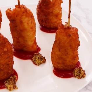 一口サイズでお手軽!ホットケーキミックスとソーセージがあれば簡単に作れる、パーティーにもぴったりなおやつレシピ、プチアメリカンドッグです!
