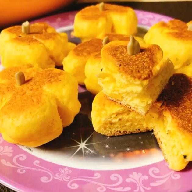 つぶしたかぼちゃを混ぜるだけで簡単♪フライパンで蒸して作るので外はザクザク、中はふわふわですよ。