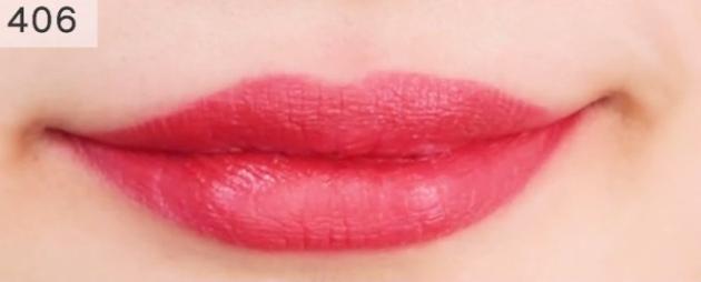 「406 レッド系」は、顔が華やかになる青みレッド。鮮やかな発色のマットタイプです。