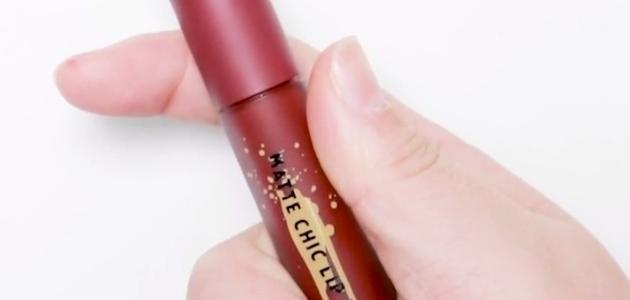 エチュードの「マットシックリップラッカー」は、ひと塗りではっきり発色する高発色ピグメントがしっかり密着し、にじみや色ムラを防いでふっくらボリュームのある唇に仕上がります。