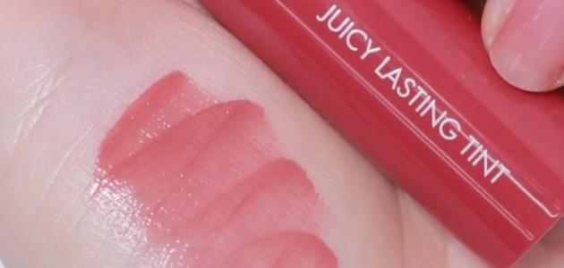 rom&ndの「ジューシーラスティングティント」は、みずみずしいフルーツがきらめくような発色のシロップティント。時間が経つにつれて唇の凹凸に密着し、華やかな発色が長時間続きます。