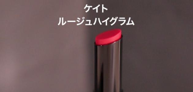 ケイトの「ルージュハイグラム」は、長時間うるおい、ツヤツヤな唇に仕上がるアイテム。上品なラメ入りなので大人の女性にも人気なんです。