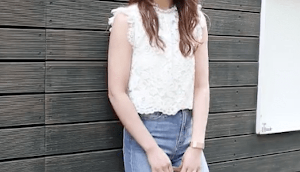 白のレーストップスは甘くなりすぎてしまうので、デニムを合わせて甘辛ミックスの完成!