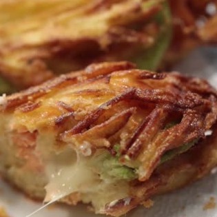 たっぷりサーモンとアボカドを細切りポテトに包んだボリュームのある一品。こんがりときつね色になるまでじっくりと揚げるのがポイントです♪