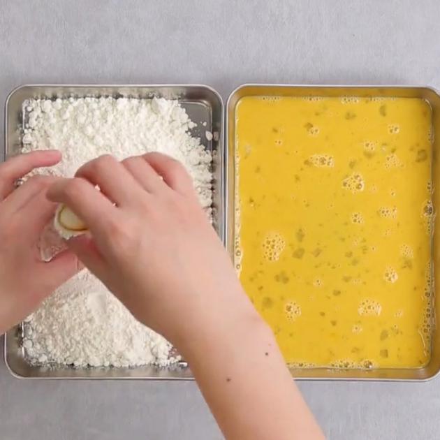 薄力粉をまぶした時と同じように、カネロニの先端にも卵をつけるようにしましょう!