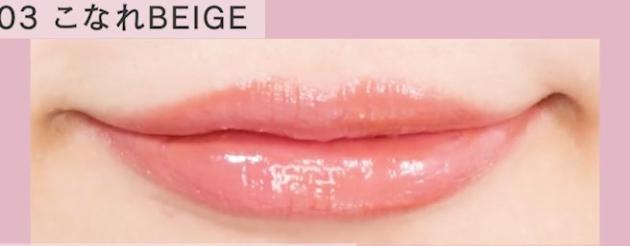 「03 こなれBEIGE」は、ヌーディなナチ���ラルリップ。薄づき発色なので重ねづけで調整しましょう。