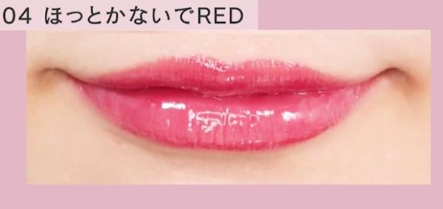 「04 ほっとかないでRED」は、色気もかわいさも演出できるローズレッド。