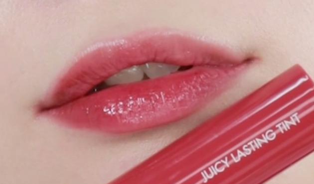 rom&ndの「ジューシーラスティングティント」は、みずみずしいフルーツがきらめくような発色のシロップティント。時間が経つにつれて唇の凹凸に密着し、華やかな発色が長時間続きます。