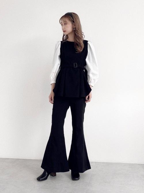 モノトーンがとっても似合うブルベ冬さん。��ザーやフレアパンツなど個性的なアイテムも合わせると、よりブルベ冬さんのカッ���よさが際立ちます。