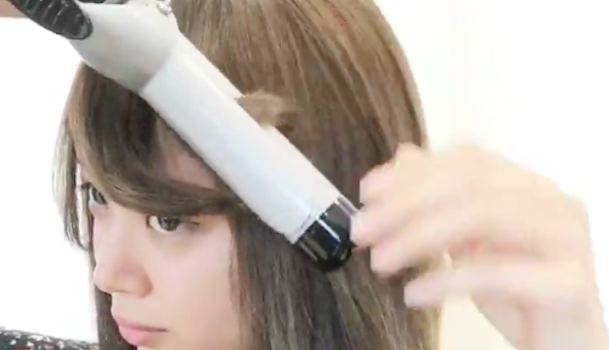片方の毛束を流したい方向と逆側にもっていき、そのまま外巻きにします。流したい方向に向かってコテを抜きましょう。この時、数秒待ってからコテを抜くのがポイント◎すぐにコテを抜いてしまうと、巻きが弱くなって上手く前髪が流せません。