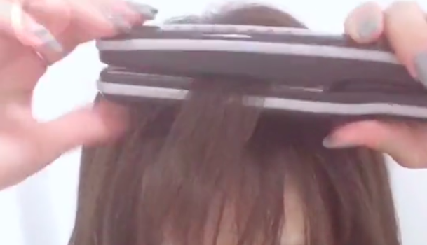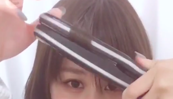 まずは前髪を2つにわけてください。前髪をすべて一度に巻くと、コテの熱が伝わりにくく上手に巻けません。今まで上手く巻けなかったという人は、一度にすべて巻いていたりしませんでしたか?前髪の量が多いという人は、3つにわけてもOKです♪