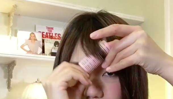 前髪全体にしっかり熱が通ったら、流したい方向に向かってゆっくりとカーラーを抜きます。髪があたたかいうちに形をととのえて完成です。