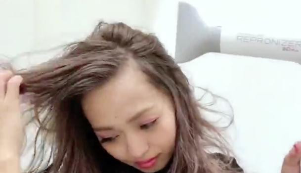 ドライヤーでサイドの髪の毛と合流させながら、一緒にかきあげるように乾かしていきます。