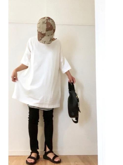 スリットレギンスなら、重ね着の下から見せるのもアリですよね。秋以降も活躍しそう♪