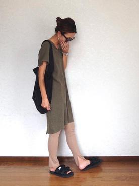 足元が軽いスリットレギンスなら、サンダルと合わせてもしっかりキマるんです。ロングワンピのいいアクセントになってますよね!