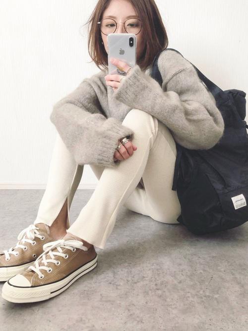 ゆったりとしたニットにレギンスをあわせることで、コーデにメリハリがつきます。黒のレギンスは合わせやすいだけではなく、細見えも狙えるので◎